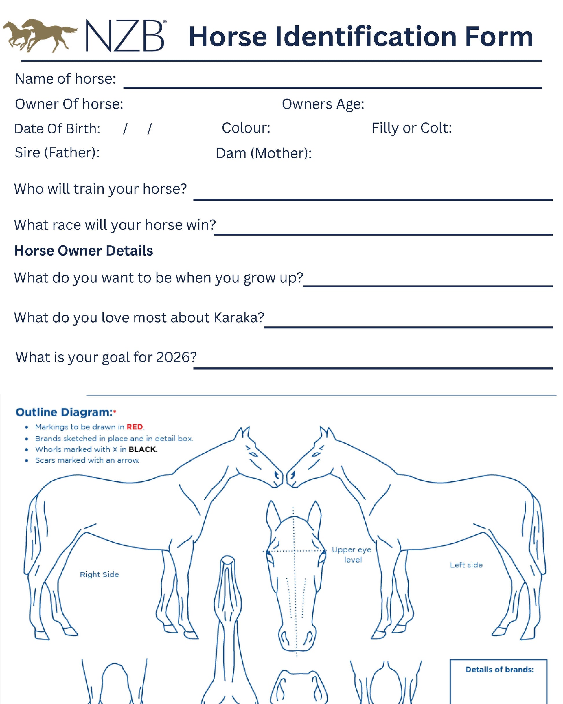 - 1x Horse identification form & colouring sheet